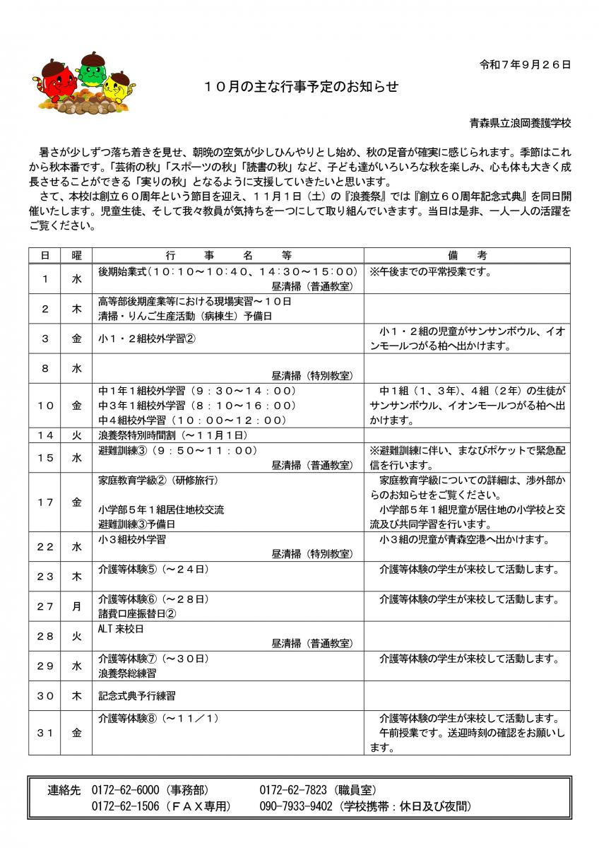 浪岡養護学校創立60周年記念式典並びに浪養祭は、児童生徒、そのご家族、本校教職員及び学校運営協議会委員等のご来賓のみで開催することといたしました。児童生徒による日頃の学習成果の発表などを楽しみにしてくださっている皆様には大変心苦しいご案内となりますが、ご理解を賜りますようお願いいたします。